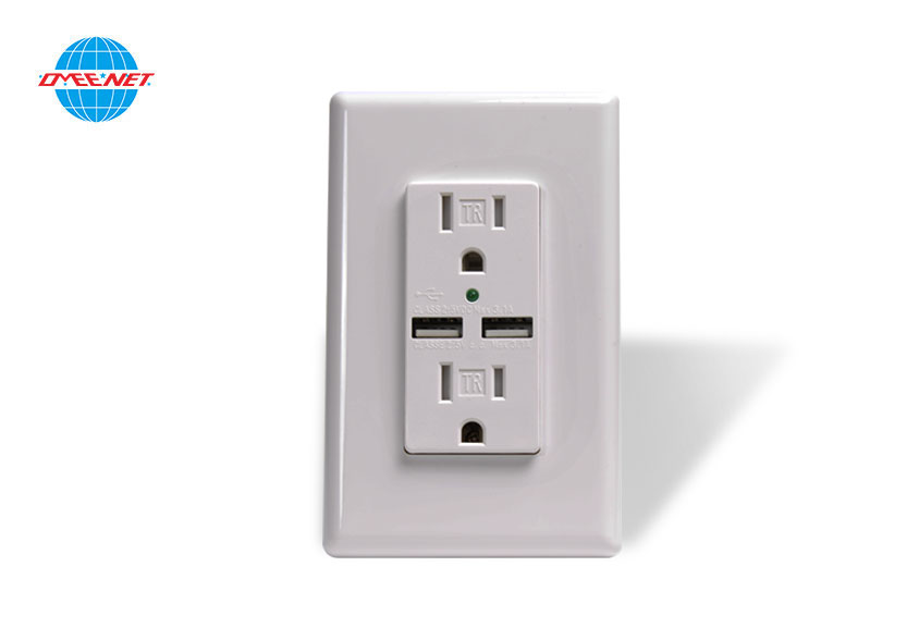 OM-USB4TRS,Max 3.1A usb wall socket/receptacle with Surge with screwless wall plate ,15A,125V,side wire only ,ETL &CETL list
